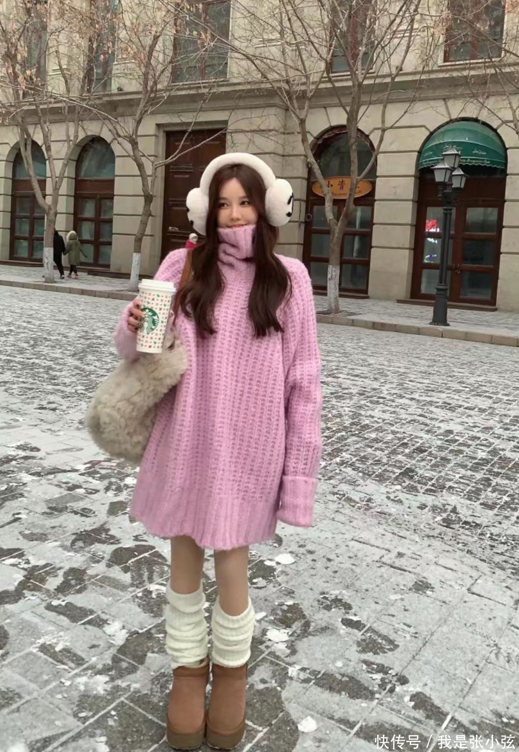 毛衣是冬季营造氛围感的不二之选,只不外在挑选毛衣的时刻,淡薄全球不要搪塞尝试修身款,像这种薄厚适中的中长款高领毛衣,穿在身上才会显得更慵懒,就算是小个子也不错裁减hold住。宽松版型的中长款毛衣,关于形体的包容性很高,搭配上白色堆堆袜和雪地靴,险些就是冬日必备。